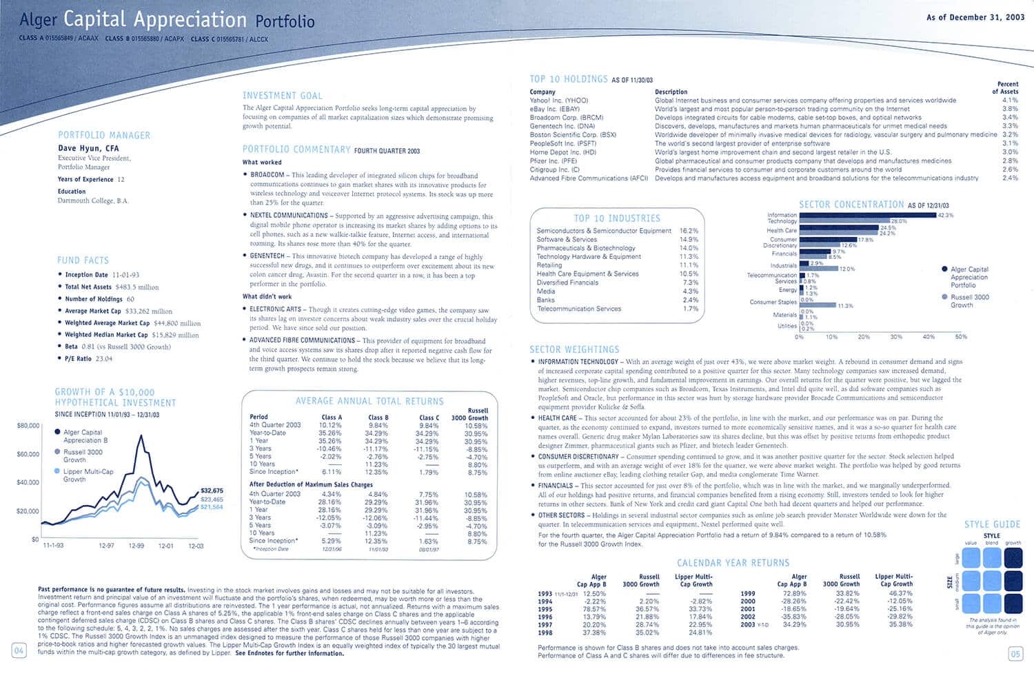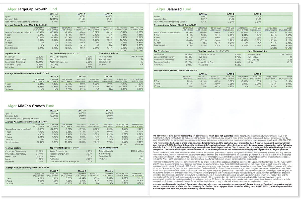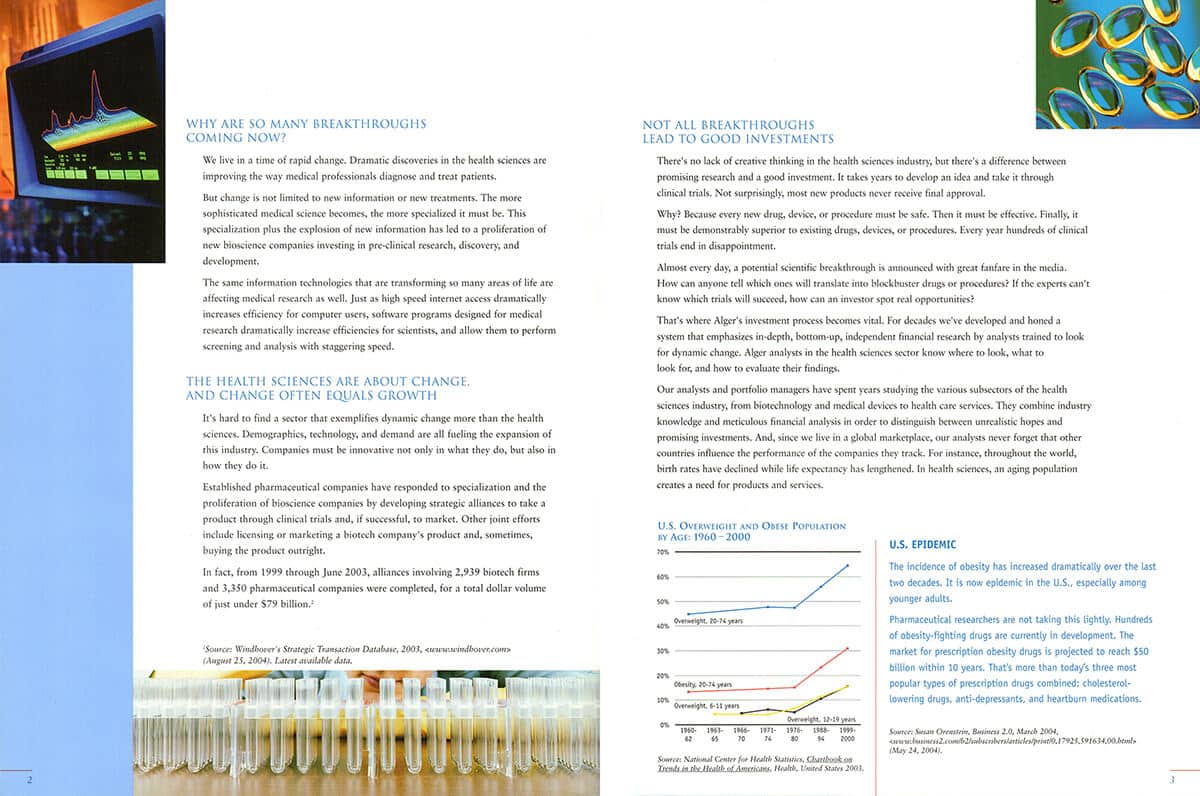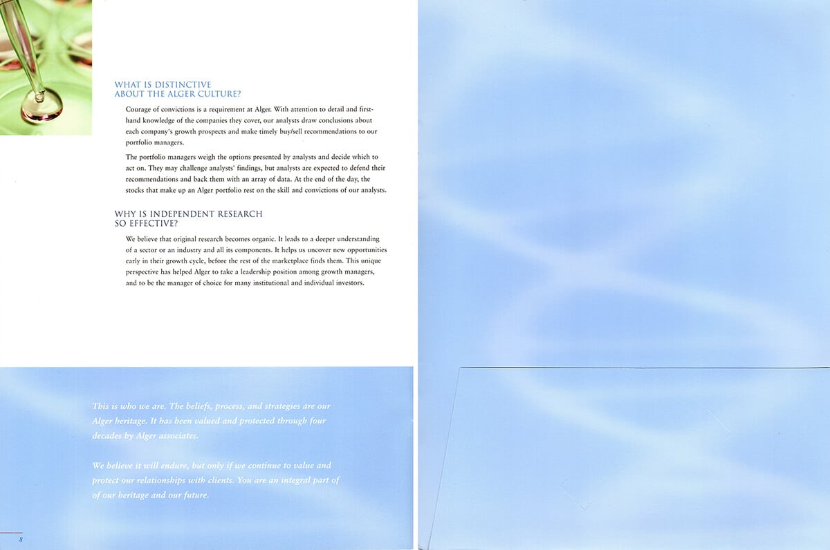 Responsible for the concept and execution of a promotional piece for Alger’s Health Sciences Fund