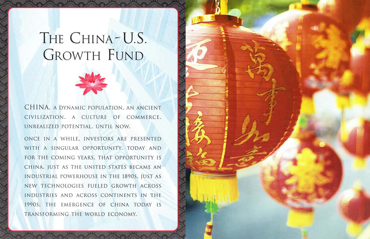Concepted, presented, designed, and oversaw printing of the launch materials for a new China-focused investment fund
